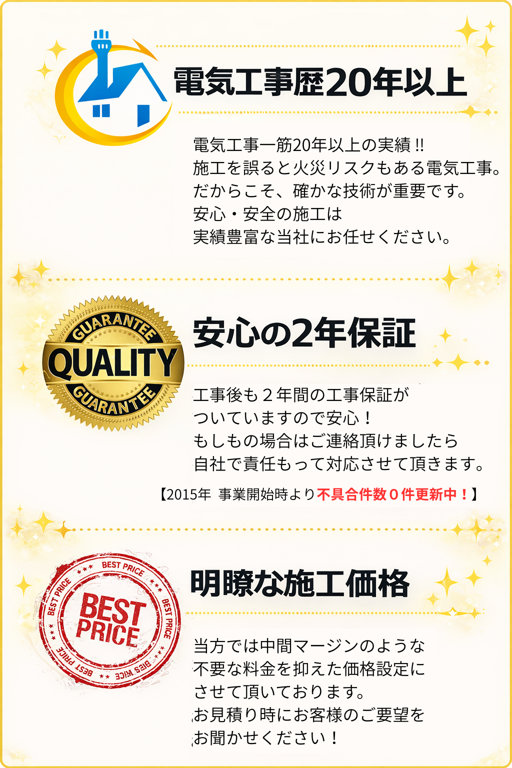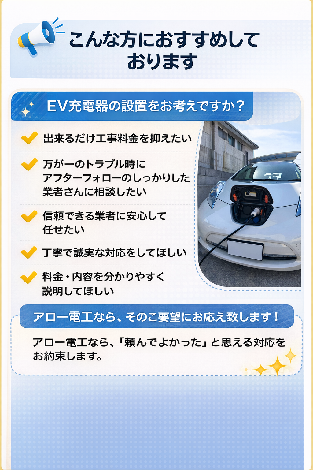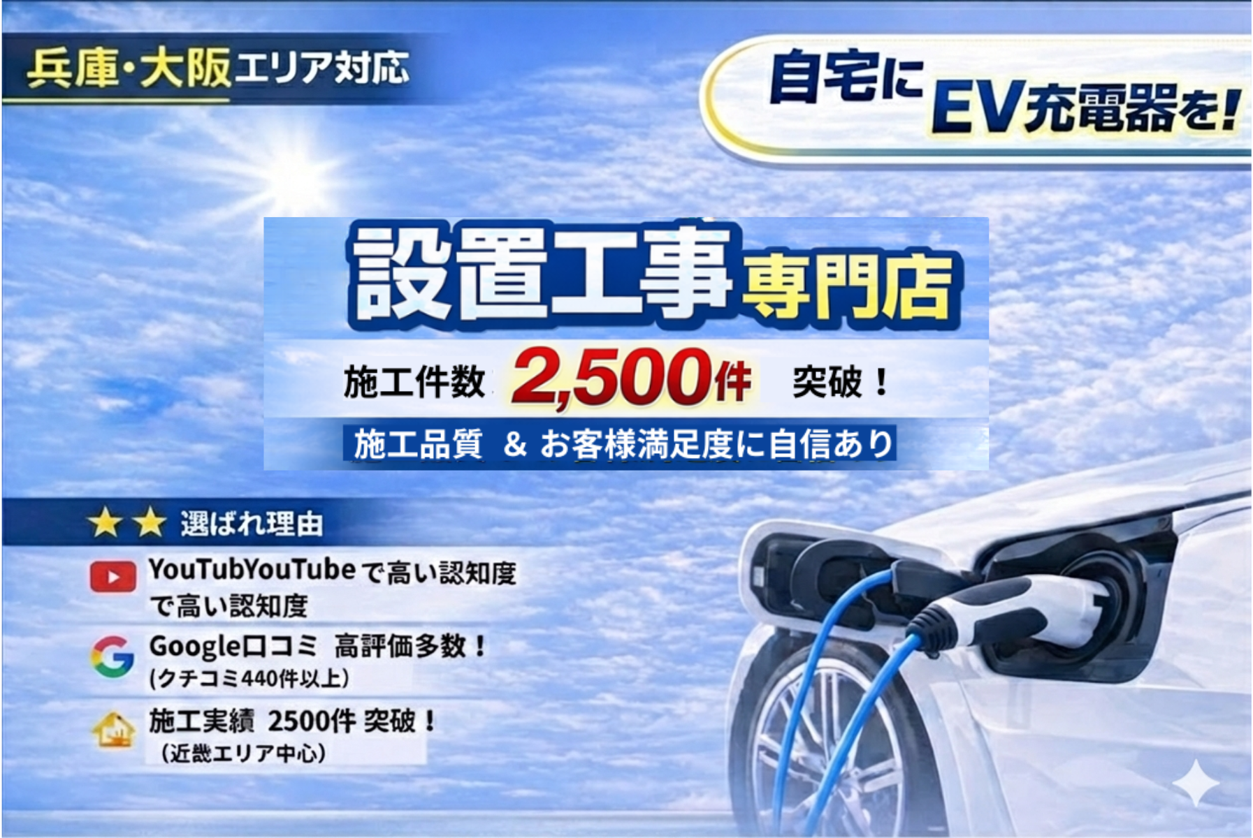 ・EV充電設備機器施工スペシャリスト ・第1種電気工事士 ・第2種 〃 ~その他多数 |